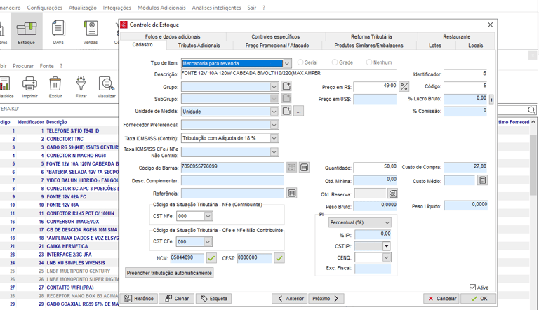 Preço promocional, kit de produtos, código de barras e controle por serial, lote e grade.